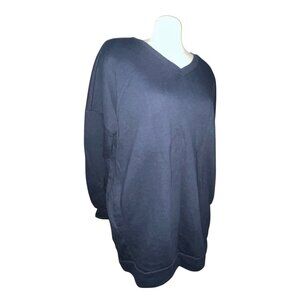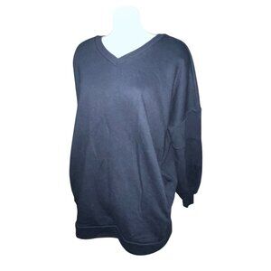 Zenana Oversized V Neck Long Sleeve Sweatshirt with Pockets Sz XL Womens Navy Bl
