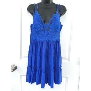 Zenana PLUS CROCHET LACE RUFFLE CAMI DRESS in Royal Blue size 3x