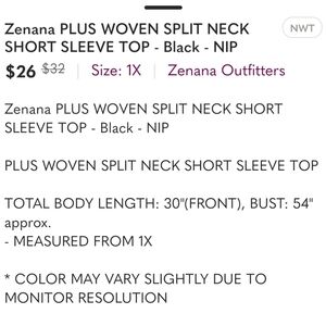 Zenana PLUS WOVEN SPLIT NECK SHORT SLEEVE TOP - Black - NIP