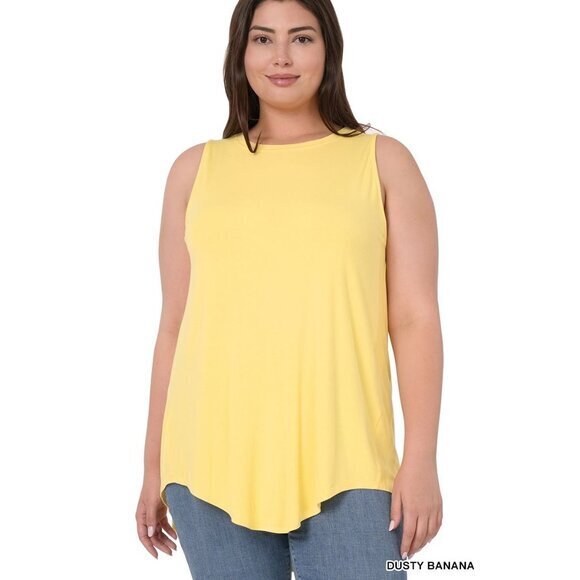 Zenana Plus Size Luxe Rayon Sleeveless Hi-Low Hem Tank Top Dusty Banana Size 1X