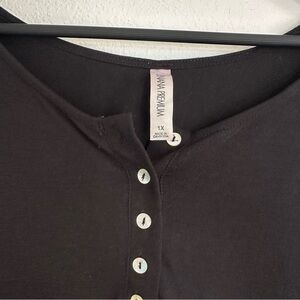 Zenana Premium Block Shirt 3/4 Length Sleeves Quarter Button Front Size 1X