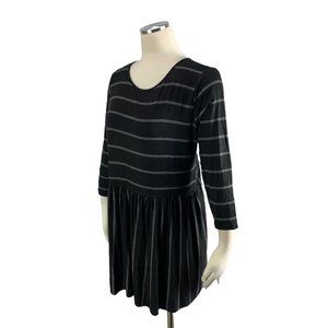 Zenana Premium black with gray stripe, long sleeve short dress. Rayon/spandex blend - has stretch.