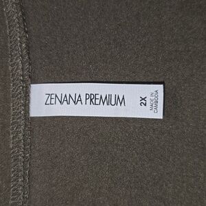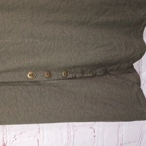 Zenana Premium Short Sleeved Army Green Top Side Pleat 3 Button Womens Size 2X EUC Please note measurements for sizing