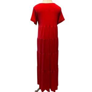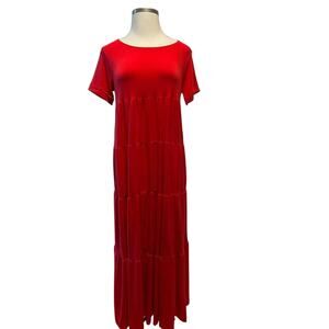Zenana Red Tiered Maxi Dress 1X Plus-Size Short Sleeve