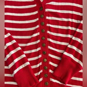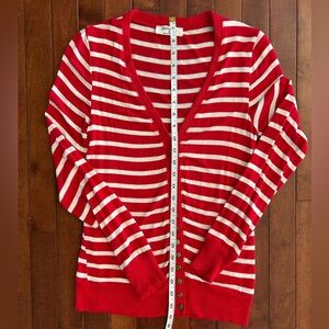 Zenana Red and White Stripe Snap Cardigan Shirt Size Small