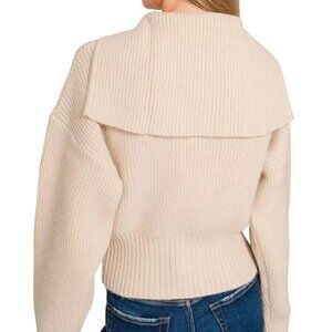 *This ribbed knit zip-up cardigan is a stylish and comfortable addition to any wardrobe. The cropped length and relaxed fit make it perfect for layering, while the zip-up closure and collared neckline add a touch of sophistication. Made from a soft and cozy knit fabric, this cardigan is ideal for everyday wear. The sand beige color is neutral and versatile, making it easy to pair with a variety of outfits. Perfect for adding a touch of warmth and style to any look.