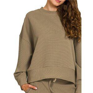 Zenana Ribbed Round Neck Pullover and Drawstring Pants Set
