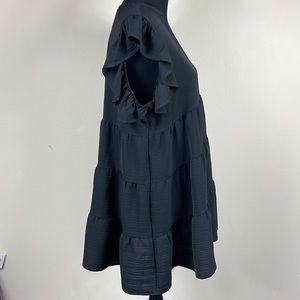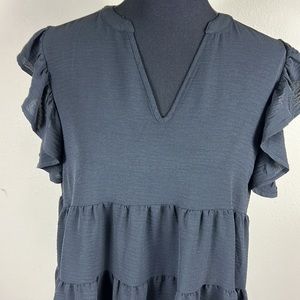 Black ruffle sleeve V neck tunic 30 inches from sleeve to hem Never worn no tags