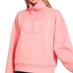 Zenana Scuba Half Zip Sweatshirt with Pockets