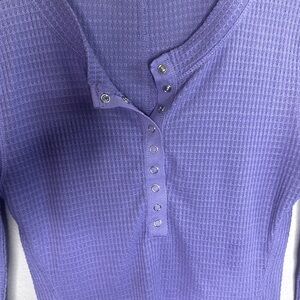 Zenana Snap Button Long Sleeve Henley Top Lavender Womens Size Small