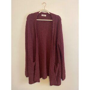 Zenana Soft Burgundy Open Front Textured Cardigan With Pockets Size XL