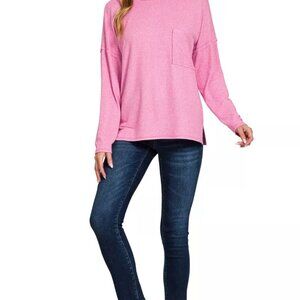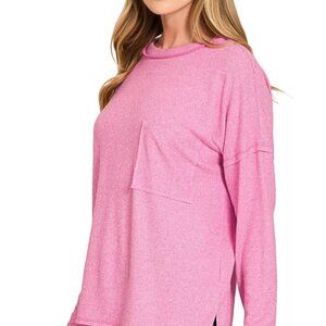 Zenana Soft Melange Hacci Round-Neck Long Sleeve T-Shirt