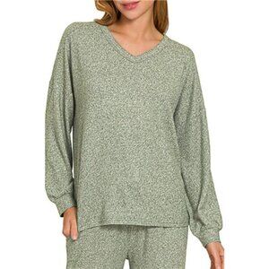 *This stylish two-piece knit set features a comfortable oversized V-neck top paired with wide-leg pants in a beautiful sage green color. Made from soft, breathable knit fabric that drapes beautifully and moves with you. The relaxed fit design offers maximum comfort while maintaining a chic, contemporary look. Perfect for lounging at home, running errands, or casual outings. The coordinated pieces can be worn together as a set or mixed and matched with other wardrobe staples. Easy care fabric that maintains its shape and color wash after wash.