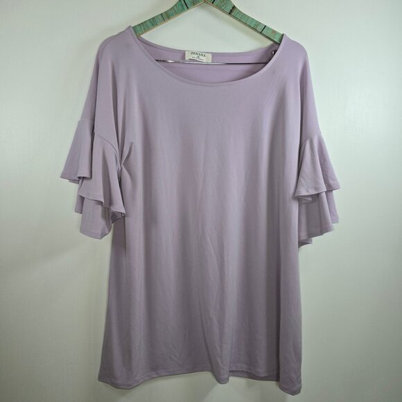Zenana, Springy, Double Ruffle Layered Slv, Lavendar, Top, Boutique, Sz 1X, NWOT