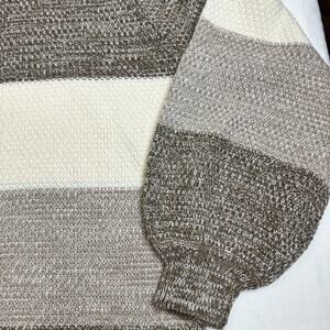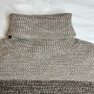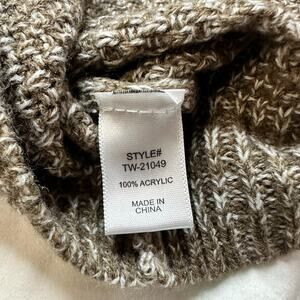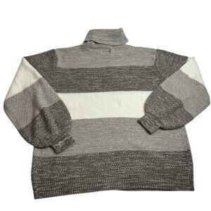 Zenana Sweater Brown White Medium Color Block Cable Knit Turtle Neck NEW