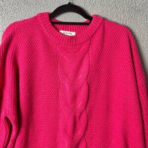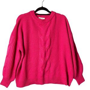 Zenana Sweater Womens L Pink Chunky Cable Knit Pullover Sweater Crew Neck