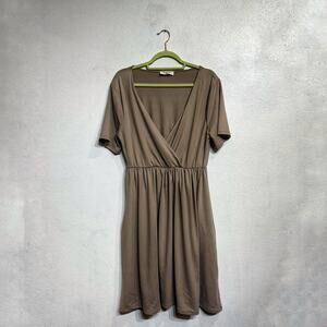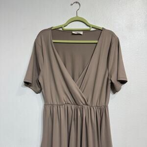 Zenana Tan Midi Faux Wrap Dress Sz XL
