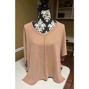 Zenana Textured Hi-Low Hem Folded Sleeve V-Neck Top