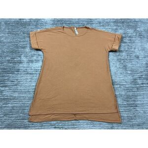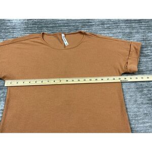 Zenana Top Womens Small Orange Short Sleeve Ribbed Polyester Blend