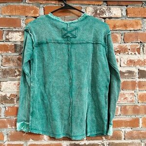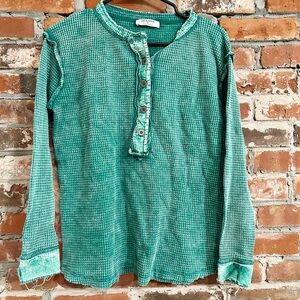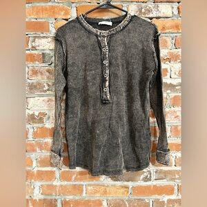 Zenana Washed Out Button-Up Long Sleeve Waffle Knit Tops Size Small