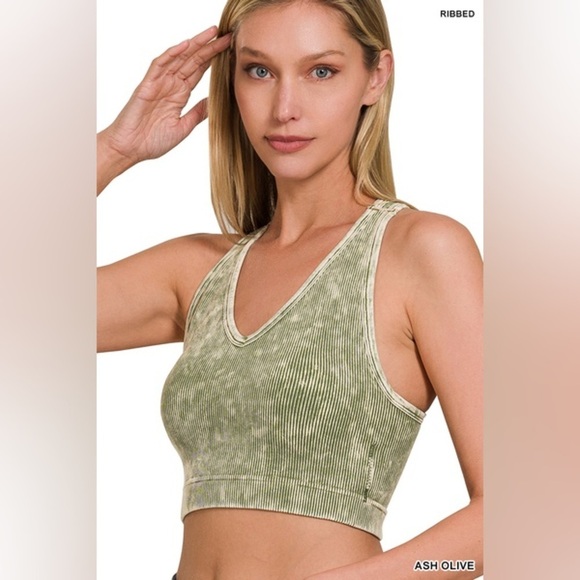 Zenana Washed Ribbed Seamless Racerback Tank w/ Bra Pad