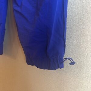 Beautiful Bright Royal Blue Retro Parachute Or Jogger Pull On Pants, With A Stretchy Comfortable Super High Waste, Toggles To Wear Cinched Or As A Wide Leg Look, Cute To Pair With A Tank And Sandals In The Warmer Months, Or A Tee And Sneakers, Roomy, High Waist, Comfortable, Track Pants, Parachute Pants, Sporty Style, Lounge Wear, Street Wear Style, Relaxed Fit, Elastic Waistband, Casual Style, Y2K Style, Track Pants, Jogger Style Pants, Athleisure, Activewear
