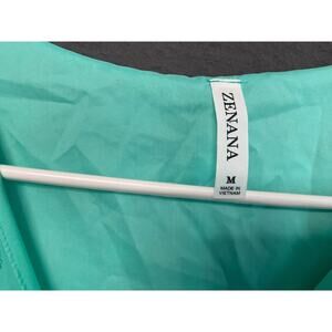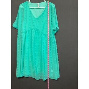 Zenana Women's Babydoll Dress Textured Polka Dot M Lined Boho Aqua Blue