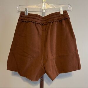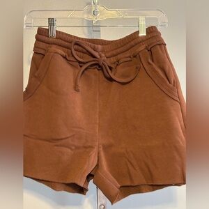 Zenana Women's Brown Fleece Raw Hem Shorts With Drawstring NWOT S