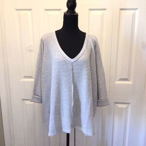 Zenana Womens Lt. Gray 3/4 Sleeve V-Neck Hi-Low Hem Jacquard Sweater Size 1X/2X. New with retail tag. From smoke free home.