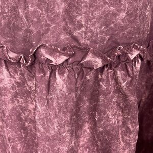Zenana Womens Maxi Skirt 1X Plum Mineral Wash Drawstring Waist Tiers 100% Cotton