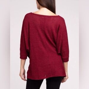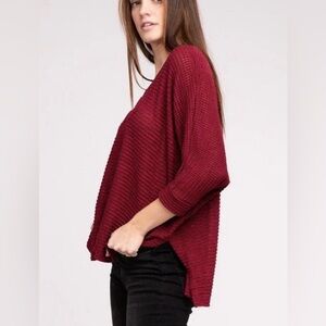 Zenana Womens Red 3/4 Sleeve V-Neck Hi-Low Hem Jacquard Sweater Size 2X/3X. New with retail tag. From smoke free home.