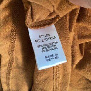 This Zenana tunic top offers a relaxed fit with a soft blend of polyester, rayon, and spandex. Designed with a scoop neckline, it provides all-day comfort and style, suitable for casual or semi-casual wear. The rust orange color adds a warm, earthy tone to your wardrobe.