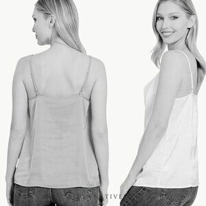 NWT Zenana Women’s Satin Charmeuse Cowl Neck Cami Tank Size Small, Sand Beige
