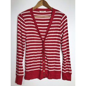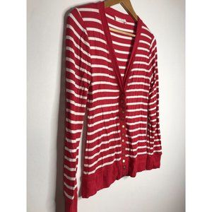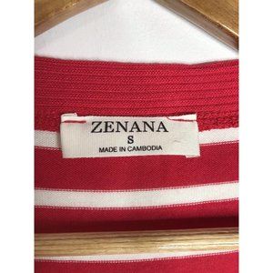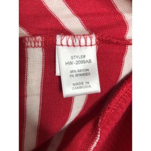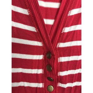 Zenana Women's Size Small Red White Striped Snap Button Long Sleeve Knit Top