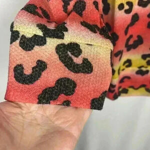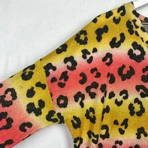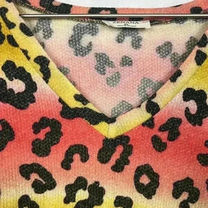 Zenana Womens Top Yellow Orange Stripe XL Animal Print Vneck Long Sleeves Hip Vents Drop Shoulder Colorful Cheerful Soft NWOT