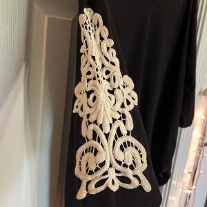 Zenana Premium Black Lace Arm Top Blouse Size L