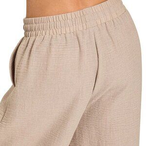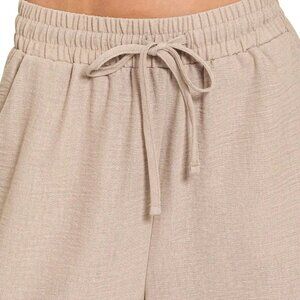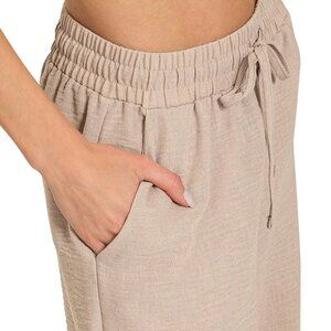 *These comfortable wide-leg pants feature a relaxed fit perfect for casual wear and lounging. Made from lightweight, breathable fabric in a neutral ash mocha color, they offer ultimate comfort with an elastic waistband and adjustable drawstring. The wide-leg silhouette provides freedom of movement while maintaining a stylish appearance. Functional side pockets add practicality, making these pants ideal for everyday wear, yoga, or leisure activities. The soft fabric drapes beautifully and the versatile neutral tone pairs effortlessly with various tops for a chic, comfortable look.