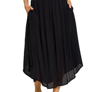 Zenana Woven Crinkle Smocked Waist Maxi Skirt W Pockets