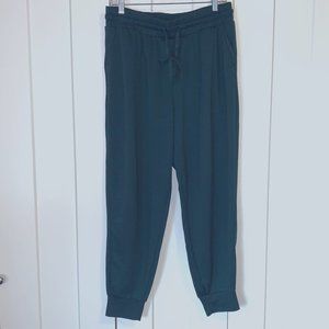 Zenana dark green lightweight joggers XL. 60% poly 27% rayon 5% spandex. Tie waist. Elastic waist is 2” wide – measures flat 16” unstretched. Inseam 27”. Knitted cuff 2-1/2” wide. Rise 12” to top of waistband. Excellent used condition. Fast shipper, nonsmoking home, 5-star seller.