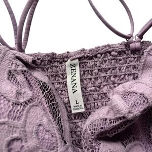 Zenana floral lace bralette L dusty mauve strappy crisscross smocked back