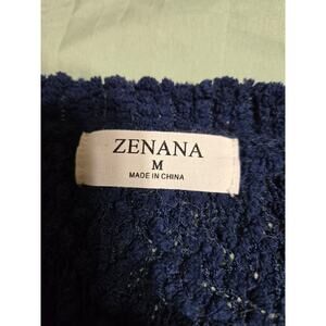 Zenana medium women's blue knit open front long cardigan