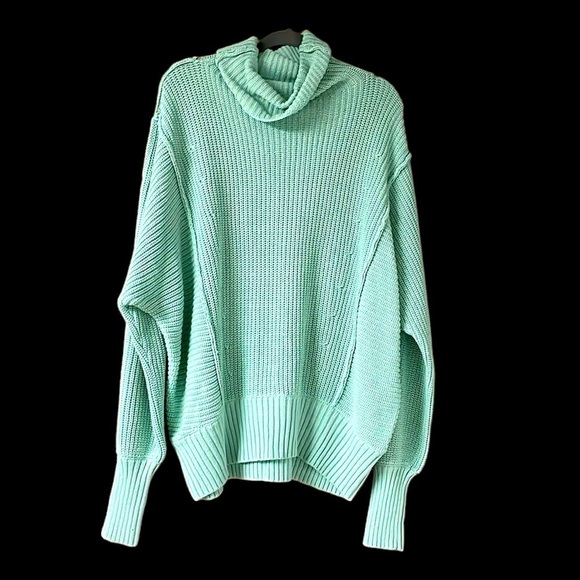 Zenana size XL mint green colored turtleneck tunic sweater with ballon sleeves