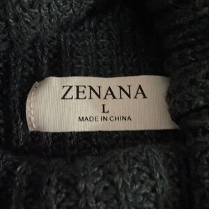 Zenana size large charcoal colored turtleneck tunic sweater with ballon sleeves
