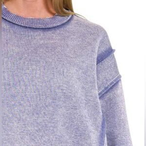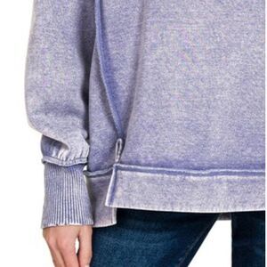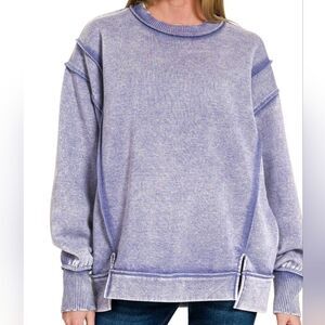 Zenana Acid Wash Exposed-seam Fleece Sweatshirt Purple Size Small