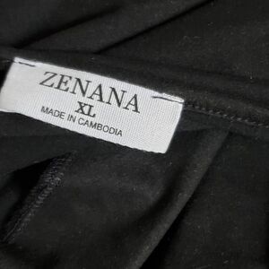 Effortless style meets all-day comfort in this Zenana black faux wrap midi dress, size XL. Crafted from a soft and stretchy knit blend of 90% polyester and 10% spandex, this dress features a surplice V-neckline, short sleeves, and an elastic waist for a flattering fit. The pullover design and knee-to-midi length make it a versatile wardrobe staple—perfect for work, casual outings, or dressed up with accessories for dinner dates.