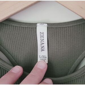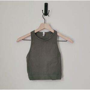 Zenana Ribbed Stretch Cropped Racerback Tank in Olive Green Size L/XL