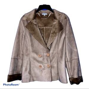 Zendra Petite Fur Lined Brown Suede Lightweight Double Breasted Coat Jacket XLP