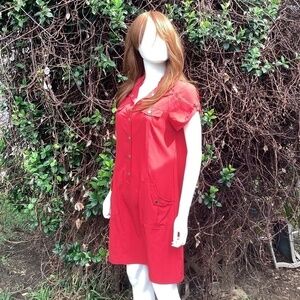 Zenergy By Chicos Red Snap High Or Low Collar Knee Length Dress