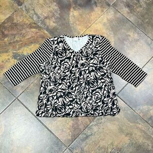 Zenergy By Chico’s Rose Floral Stripe V-neck 3/4 Sleeve Top 3 XL 16. Measurements in photos. In good, pre-loved condition. Comes from a smoke free home.