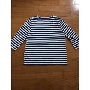 Zenergy By Chicos Striped Floral Print T Blue White 3Q Sleeve New With Tags